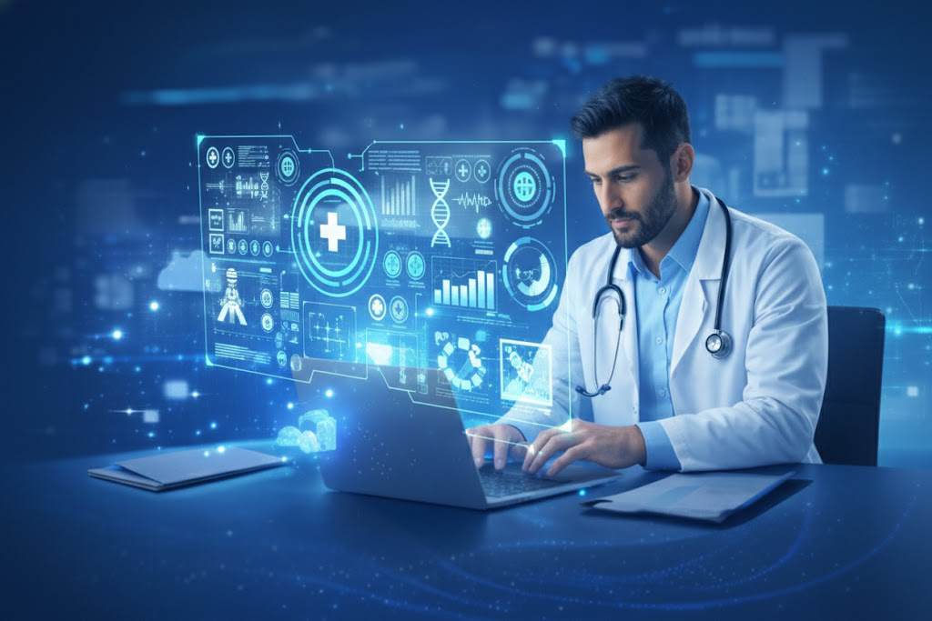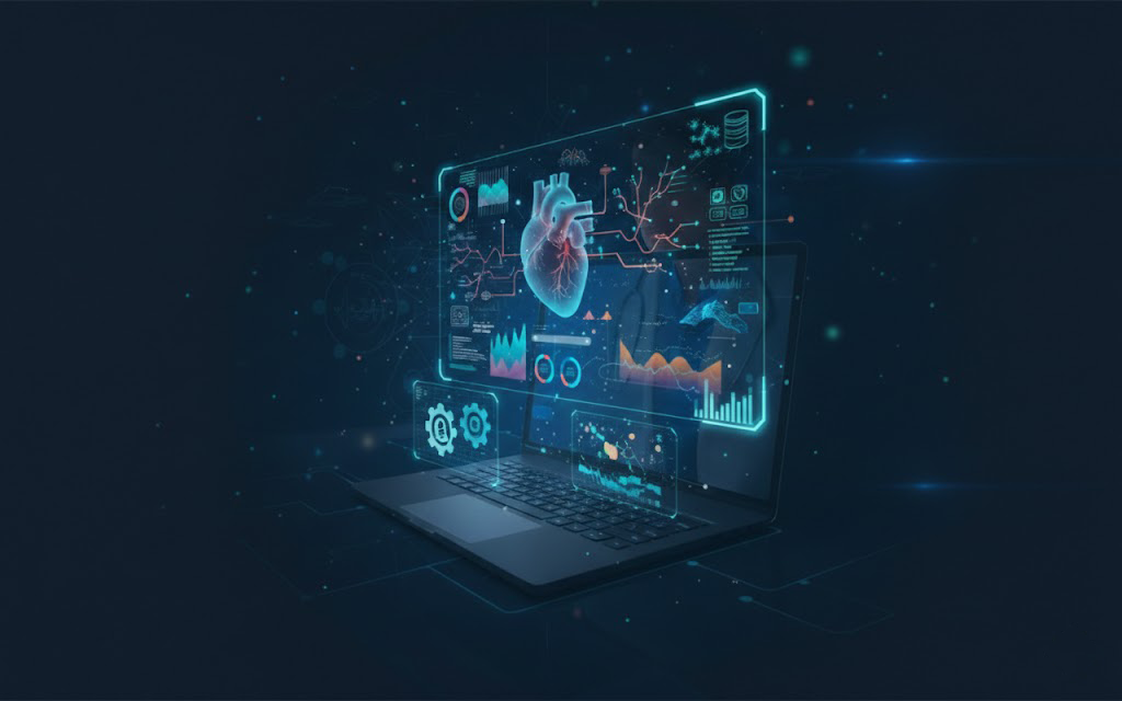 Custom-built clinical and administrative software including EMR/EHR systems, hospital information systems, pharmacy management, and diagnostic workflow solutions.