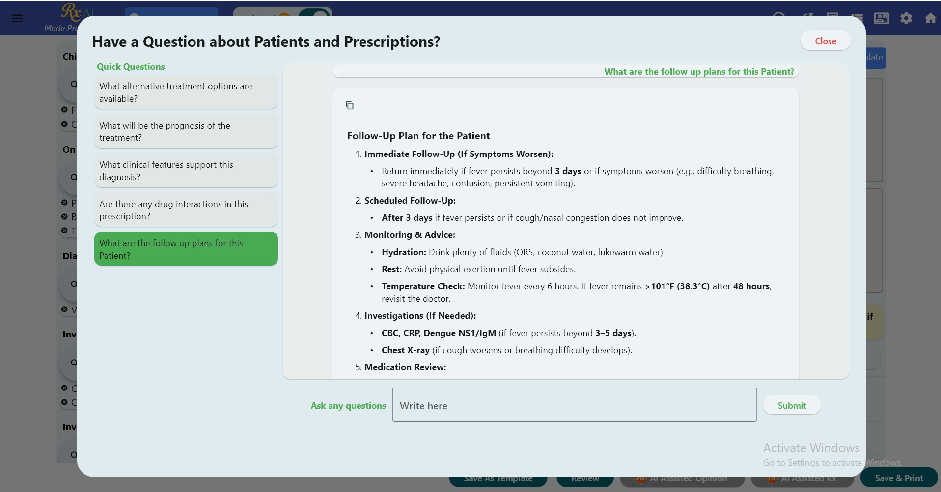 - On-Demand Knowledge Sharing: RxAI answers queries on prognosis, drug safety, risks, and benefits for better clarity.
